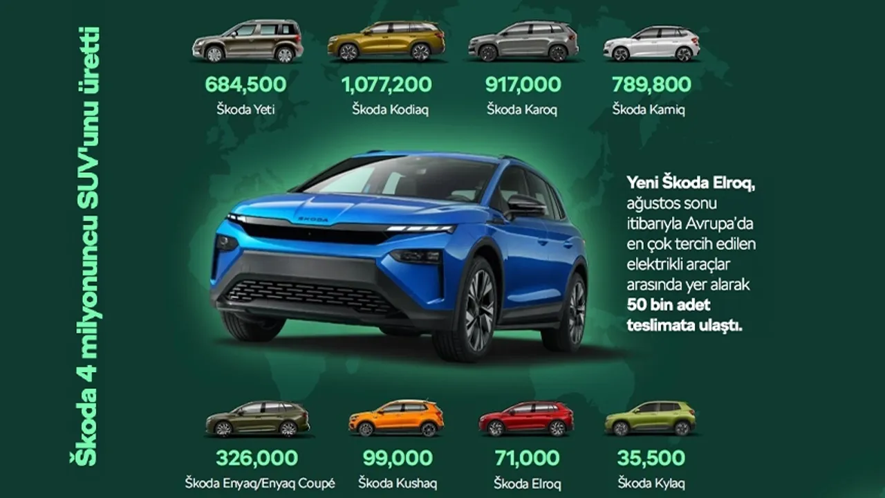 ODMD verilerine göre 2025’in ilk 8 ayında SUV modeller yüzde 62’nin üzerinde pazar payına sahip oldu. Škoda’nın ise Türkiye’de Ocak-Ağustos döneminde satışlarının yüzde 41’ini SUV modelleri oluşturdu.